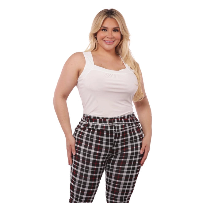 Black, Burgandy, and White Plaid Print - Plus Size Treggings Skinny Pants